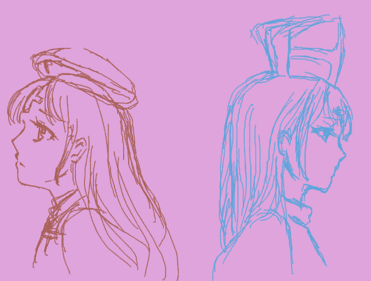 日はまた、先日読了してから映画のほうも見終えたのですが、ここでちょっと考察やらなんやらしてみたいなーと思います。考察といっても、ブレットの心理は大体ジェイクが被害妄想気味に描写してくれてますしジェイクの心理はジェイクが鬱モードに入るたびに自己考察してくれてますしついでにコーンやマイクはとても分かりやすいですしビルは普通にいいやつですしヘミングウェイ先生がなんでこんな話を書いたかっていう話になってくるわけですが。『ヘミングウェイと猫と女』だったか…ヘミングウェイが描く女性が聖女かビッチの二択っていう考察がありました。 お母さんがかなり恐い人だった影響が結構あるらしいですね。 その本にはブレットについての考察も日はまた自体も掲載されていませんでしたが、それを読んで今更ながらブレットって聖女もビッチも、くわえてお母さん属性も持っているよなあと思えてきました。 マイクのコーンいじめもコーンのロメロ殴りもヒロインの面目躍如で止めていますし。 火種を作り出してるのはブレット本人ですが。「喧嘩はやめて~」的な所ももちろんあるでしょうが、マイクの場合は特に「大事な男にかっこわるくなってほしくない」という所もちょっとあるようですね。 だからこそ、「かっこわるくならない」ジェイク好き好きモードがあるのでしょうが。 ジェイクとしては「だろ、俺頑張ってるんだよ、かっこいいだろ」と思いつつも「たまんねえな」って思うような、そんな信頼関係。 素直なままで複数の男と同衾し、素直なままで人の世話を焼き、素直なままで席を外してそこで鬱素直モードになるブレットと、 そんな彼女の鬱顔を独占している気分になっているジェイク。 我慢して我慢してポン引き男を紹介し、我慢して我慢して駄目な奴の失態をゆるし、我慢して我慢して席を外してそこでも取り乱さないままで沈み込むジェイクと、 そんな彼の暗い寝室に上がりこんで来る(with男)ブレット。 この二人って逆なように見えて、結構似ているのかもとも思えてきます。:続くかも蛇足: もしも登場人物全員を性転換したら・ジェイク→戦争の傷を抱えて、結婚とか考えられない元女性兵士・ブレット→ヤリ**な元軍医師(時々おかん属性)・マイク→金遣いの荒い元兵士なお嬢様・コーン→婚約者の居るストーカー女(ボクサー)・ビル→ジェイクの親友。映画では百合要素を減らす為に出番削られる・フランシス→コーンの婚約者。不憫。怒ると嫌味っぽくなる・ジェイクの「婚約者」(仮)→すぐ調子に乗るホスト・ブレットの配偶者→DV妻 なにこれ結構気になる…※以下自分絵注意最終更新日 2015年07月30日 00時28分42秒