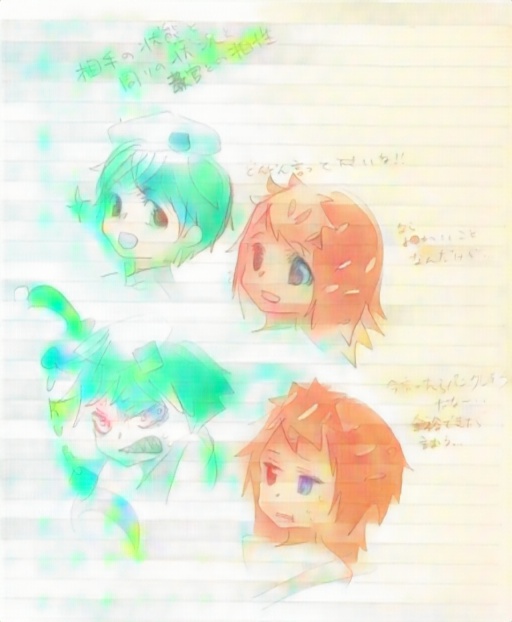※自動着色※例によって例の如く顔だけ※自分絵ブラック家族ホワイト家族思い出しながら描いたので間違ってるかもと思ったら案の定巴の前髪ェ…orzホワイト家族の方はカップやきそば現象のターゲットにしたはいいけどのーこちゃんとか菊音ちゃんとか髪型似てるだけな気する…キャラ的にはのーこちゃん→ちまき 菊音ちゃん→まつりちゃん、とテンション合いそう。もし顔を合わせることがあったらどんなリアクションを取るのか考えると楽しい。