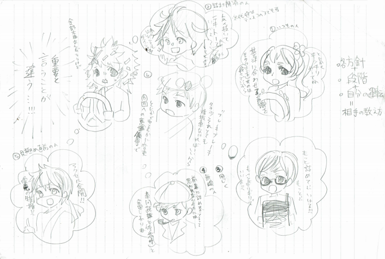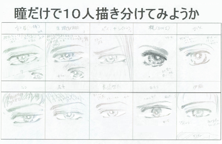 ・黒髪・概ね短髪・包帯と流血と不敵さが似合うエリートor体育会系10人 タイプや立ち位置が似てるなと思って集めてみたけど逆に違いが分かって面白いの巻・実際に顔合わせたら気が合う時はとても合うけど合わない時はお互いなかなか譲らなそう・集団行動で意見が分かれた時に折れる度勝手に番付:宮っちん(いい子)>青嶋(さっぱりしてる)>あきら(溜める)>パイ・ヤン(子供が気を使ってる様子に気が引ける)>伊織(家が絡まなければ)>梶(折れるというより諦める/単独行動を始める)>シン(安全性の確認取れてるなら何でもいい)>赤木(相手が専門なら任せる)>安居(場合によるがトラウマ関係の時は絶対譲らない)≒赤の王(場合によるが王としての何かを問われる場合絶対譲らない)・泣く度:※哀しみ・虚しさよりは悔し泣き・悔の涙が多い安居≒パイ・ヤン>あきら>宮っちん>青嶋>朱理>伊織様シンとパールちゃんと赤木は泣いてる姿があまり想像出来ない・以下何となくの描き分け。1兄貴分優等生→人を見定める目・対夏B版。泣きぼくろ。イノセント鬼火眼光。・4つ角全部パッキリ割れたみたいになってる。遠目だと外側の端上下から睫毛出てることが多い。・髪の長さ3~5cmくらい/割と地味にモデルチェンジ/後頭部白髪2末弟王子→常に自信満々。・多分一番眉尻が太い。目頭の隈っぽい所によって苛烈さが強調される。7種では吹雪の方がテンション的に似てるかもしれない。・10cm以上/後ろの毛はよく逆毛モードになる3お父さん勇者→よく蒼褪める。大体いつも怒ってる@とらじ。・下睫毛が出てることが多い。ガビーン。・50cmはある/きしめんのような作中きっての美髪スーパーロングストレート4代表選手→無表情で常にキリッとしてる。多分この中で一番クール。頬にほくろ。・眉毛もっと濃い。よく目をつぶって音楽聴いてる。・2~5cm/ふさふさ5秘密チームの一員→活発ダンスィ。・他の子に比べるとシンプルな目。その分表情によって印象が変わるかも。・10cmほど/ゴンさん6引力男→この中で一番謎が多い。確固たる意志。・上目尻は流れる・下目尻はぐいっと持ち上がる感じ。・7cmほど/綾波っぽい7エリート野郎→ハイソでアメリカン。・垂目っぽい。アイホールにパールまぶしてる感がある。・10cmほど/普通8サッカー→鈍感でいい奴。・塩顔で目が長い。あまりアップにならない。・3~5cm/パリッとしてる9甲子園→常に何かに追い詰められたような目。・木の実っぽくて可愛い感じの目。初期目。・2~4cm/猫っ毛っぽい10バイク→余裕を湛えた目。・どちらかというと垂目?・10cm~50cm越え/若干柔らかそう・描いてて思ったこの人もこういう表情しそうだなメモ:安居→35689朱理→47810パイ・ヤン→2568梶→26710宮っちん→38シン→45赤木→24510青嶋→3510あきら→138伊織→238・群れの長/ 安居(夏A)朱理(国王領/赤)パイ・ヤン(勇者御一行)伊織(東条家)・ソロ充/ 梶 シン・エース/ 安居(水泳)パイ・ヤン(勇者)あきら(野球)赤木(仕事)青嶋(サッカー)梶(スケート)シン(災害対応)・御子息/ 朱理(悪政王の皇子)伊織(利用される血筋)・子供の世界/ 宮っちん 安居 あきら 青嶋 (梶/学園)・大人の世界/ 朱理 パイ・ヤン 赤木 梶 伊織 シン・現代日本/ 梶(スケート)宮っちん(湖)赤木(会社)青嶋(テロ)あきら(サスペンス)・きなくさい世界/ 安居(隔離施設→隕石衝突後)朱里(文明崩壊後の日本)パイ・ヤン(鼠)シン(人的災害・テロ)伊織(世紀末染みた世界)・目線で人を殺せそう/ 安居 朱理 梶 シン・掴み切れない/ あきら 伊織・睨んでても安心感がある/ パイ・ヤン 宮っちん 赤木 青嶋・青嶋とはるこは正直どっち描くか迷った・梶真珠ことパールちゃん描こうと思ってBOX系読み返したら瀬々パル瀬々に軽率に萌えた************以下お遊び***********▼大体の色イメージ@自動色指定お借りしました以下カラバリ。それぞれ異なる覚悟を宿す目。ファンタジー/スケートリンク/村起こし/オフィス/教室レスキュー/世紀末サバイバル/戦/ミステリーサスペンス目が、何の為の覚悟を宿しているか。2017年08月28日 12時55分17秒最終更新日 2017年10月01日 22時26分55秒