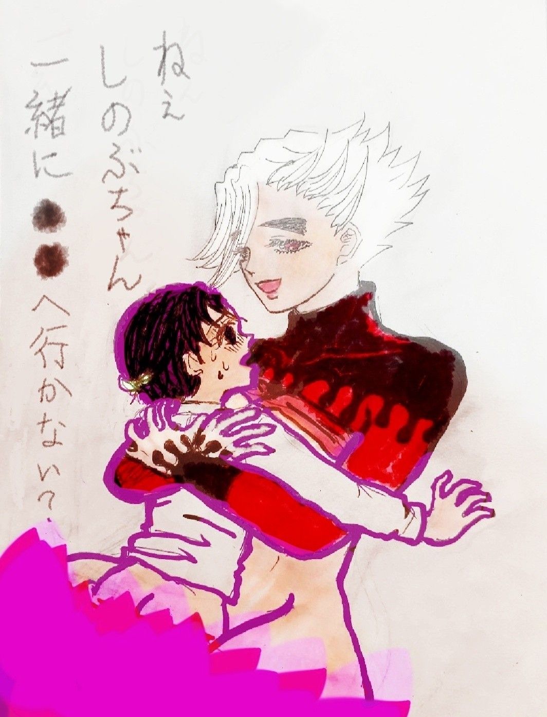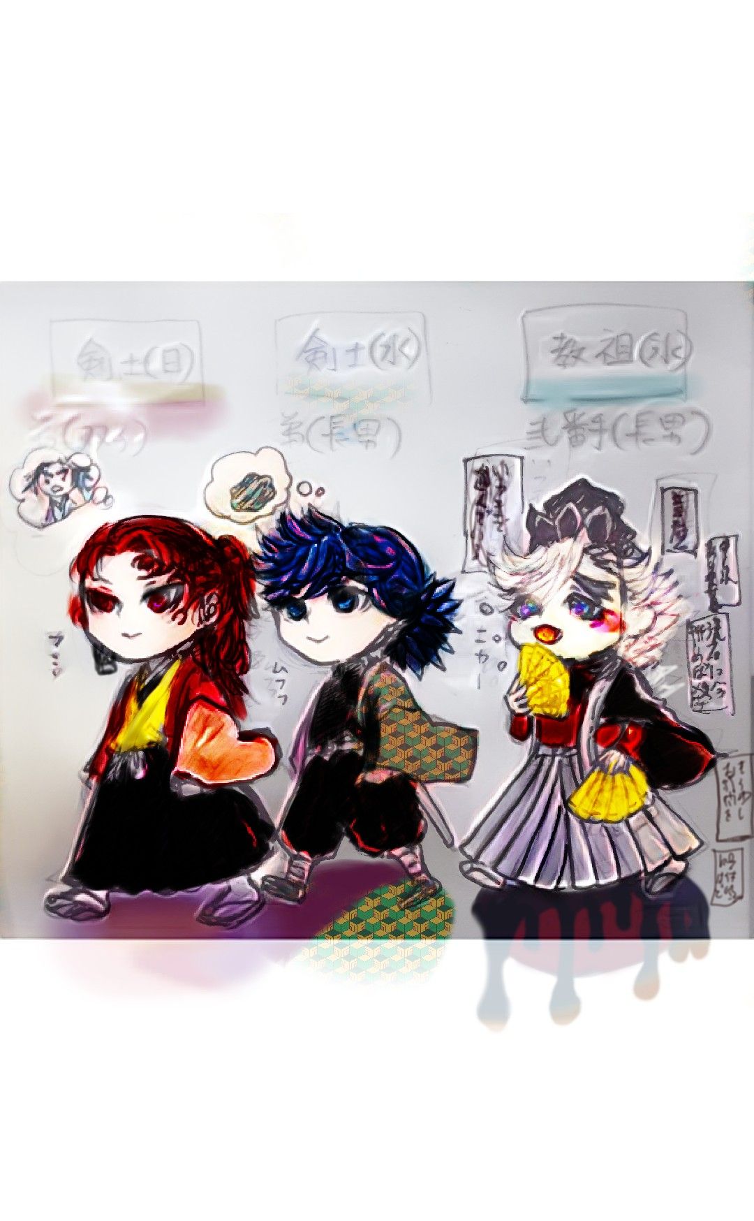 鬼とは幼いものらしい。鬼になってからは心も体も成長が止まる。ならばせめて、幼い体のうちに、幼い心を手に入れておけばよかった。今も昔も幼い心など得ないままで、大人の理性と赤子の感情をもって俺は鬼になってしまった。時間をさかのぼれば何がしたい?と問われれば答えは一つ。いつものように人々を救いたい、ただそれだけだ。俺は進化した。そして、時を短時間だけ遡る血鬼術を手に入れた。遡るごとに俺の肉体はぼろぼろになるが、人を喰べれば、救済すれば問題はなかった。好奇心で時間を多くさかのぼり過ぎた。どうやら俺は俺が人だったころより数百年の昔に来てしまったようだった。この時代でも人々の絶望は変わらなかった。ゆえに俺は絶望した人を救ってあげた。病で苦しみ、子に罪を犯させる男を救ってあげた。病で苦しむ、子の死を見ない為女を救ってあげた。男を探して暴れる子を救ってあげた。女を探して彷徨う家族を救ってあげた。あのお方が再び俺に会いに来た。即座にひざまずく。なぶられても耐え抜く。何せこれから俺はたくさんの人を救わねばならない。人に傷付けられるであろう人を救い、鬼として俺の中で生かしてあげれば、その人々は罪を犯さずに長生きすることができるのだ。ああ、なんと尊いことなんだろう。