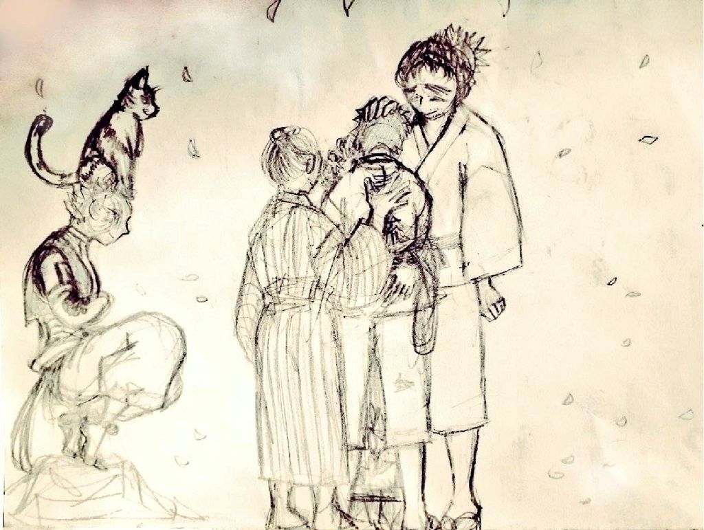 この世界では。かつてちっぽけな人間だった者ほど、異様な結末に至るらしい。 目の前で真っ黒に空を焦がしながら燃え盛るそいつによって、集まった兵隊たちが次々とエネルギーを吸い取られていく。そうして、そのエネルギーはたった一人に捧げられる。 その一人の意志を無視したまま。「おれは、おまえがぶじなら。おまえといっしょにいられるなら、どんなすがたになったっていいんだ」 そう呟く「それ」に、雁字搦めにされたホーマが叫ぶ。「どうして!おまえはいつもそうやって!危ないことばかりするんだ!」 そう叫ぶ彼には同意しかない。 ボクもまた、彼と同じように危なっかしい相方を持っているから。 危なっかしいことをする同士、きっと同じ陣営だったら仲良くなれたのだろう。 いや、断る神様に供物を捧げる狂信者同士、同族嫌悪に陥るかもしれないな。「ホーマがチャーチを相手してるから、ボクたちはこっちをなんとかしないとね」「お前に命令される筋合いはない」 まぁ、素直に聞いてもらえるとは思ってないけど。「じゃあ、コジョウの命令をボクは聞くことにするよ。どうする?」「…アタシの魔法は今、貸し出し中なんだ」「えっ!?」「今『使えねー』って思っただろ、テメェ…」「おっ、思ってないよ!!」 コジョウじゃあるまいし、という言葉は呑み込んでおく。「でも、代わりにもらったものもある」 コジョウは血まみれのナイフを取り出した。「それは…」「アタシが能力を貸した奴…ウィズとかいう頭のおかしい奴から借りた。 精霊を殺しまくったナイフだ」「えっ」「精霊の怨念が染み込んでる。立派な呪具だ。持ってるだけで不幸が起きる。---つまり、ここに効く」 だから最近やたらとついてなかったんだな…なんて思ってると、ぶす、とコジョウがナイフをチャーチの足元に投げた。瞬間、盤石だと思われていた足元の光り輝く魔法陣が消えていく。「これでお仕舞だ、チャーチ。ホーマと一緒に永遠に仲良くしてな」 瞬間、雪崩が起きる。チャーチと、そのすぐそばに居たホーマの周りだけ。「なんてことをするんだ君は…っ!」「これしかないだろ?もとよりアタシはあの方さえ無事ならどうでもいいんだ」「それにきっと、あの2人だって、お互いさえいればどうでもいいのさ」 そういって笑うコジョウの笑顔は、どこか憧れを含んでいるようでさえあった。