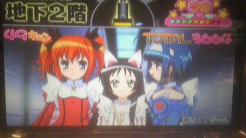 みなさんこんばんわ!ぴょん@キュンキュン中毒患者です 死 昼間の日記に書いたとおり逝ってきましたよ。。。仕事帰りに最寄の店へ。。。って先客あり 汗 しかたないので一回帰宅して再度出直す。。。開いてた!w 今日も合算1ぽいけどきにしないぞー w 今日は頭ぽこぽこ引くけど追加投資が止まらない w それもそのはず。。。化けより+エンジェルタイムが続かない w 「今日の戦跡」B(2鳴り)+R(鳴り) 3キュンB 自力で1キュンB 自力で1キュンR 無しB 自力で1キュンR 無しB 自力で1キュンR 無しR 自力+R(鳴り) 2キュンR 無しB 自力1+ナビ1(自力からのでナビ1) 2キュン 途中化け四連とかやめて欲しい。。。って思ったよ 汗化け神の呪いかと思いました・・・絡み悪い(低確)と化けでもナビこないし。。。長いのどっかで引かないとジリ貧ですね。。。 1837回転BB 6回MB 7回キュンキュンメーター 60→61にレベルアップ w 本日の新規ミッション達成リスト No.24 怪盗演出プレミア ← 葵の矢がレインボーだった w No.37 ツインファントムバトル逆転 No.46 通常画面プレミア 地味だけど。。。これはプレミアだね w 頭引いてもなかなかミッション達成が増えないのが楽しくてたまりません w 今日でやっと47%か。。。まだまだがんばれます♪ 本日の養育費6000円也 これだけじゃ寂しいので。。。 かわいいプレミア写真を一枚のっけときます w ブラックレーダーバトルプレミアです やばい。。。 ちびクルミかわいすぎるわ!死 もう。。。この思考回路をどうにかしてください 汗いっぺん死んだほうがいいかもしれない。。。でも。。養育がんばるためにまだまだ死ねない! そうそう。。。今日ためしてみたクルミカスタムもまずまずだったけど。。。個人的には遙カスタムのほうがしっくりきたかな wクルミカスタムはつんでれ色が強かったから、明日は遙カスタムに戻してやろっと 死 きっとマイスロやってない人にはまったくわかんない内容だろうね 素でも。。。きっとこれ読んでる人もマイスロをそのうちやるんだからさ 早く登録したほうがいーよー!遙と葵とクルミが待ってるよー!素 ということで明日もがんばります w P.S.ツインエンジェルを愛してるまりーんずさんがコメントくださってたので。。。マイスロIDを載せときますねぴょん777 まんま。。ですね wご登録お待ちしてますね~ w P.S.2明日の大井メインの予想をして終わります大井10R<デイリー杯> ◎07:バグパイプウインド○04:ライジングウェーブ△05:コウエイノホシ×01:ルースリンド☆14:クレイアートビュン バグパイプはずっと追ってる馬なので願望をこめて。。ライジングウェーブは52キロが有利とみて。。。クレイアートビュンは切ると来るので w 地方なのに16頭とか多すぎなんで自信ないぞー 汗とりあえず以上の3複BOXで勝負だ(弱気) では寝ます。。。