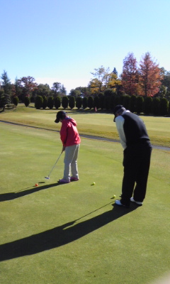 スタートは9:30まずは練習です祖父と孫の2ショット隔世遺伝を思わせる風景ですいよいよスタート豪快な空振りも微笑ましいパフォーマンス・・・と言いたいところでしたが祖父は孫にも容赦なく 「あ~・・・だめだよ、そんなスイングじゃ」”褒めて育てる” ということを知らない世代には通用しません