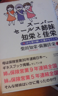 そう聞かれたら、昨年までは矢島晶子さん(←しんちゃんの声優さん)と答えていた。知り合いと言っても、10年以上も前に、知り合いの家でばったり遭遇(?)したのが縁で、その後ずっと年賀状のやりとりだけをしていた。しかし、今年は年賀状は来なかった。彼女にもいろいろ事情があるだろうし、むしろ一度しか会ったことの無い人に、10年も年賀状を送り続けてくれたことにとても感謝している。私ばかりでなく、子どもたちも、彼女から年賀状をもらうことで、どれだけ励まされてきたことか。で、最近はと言うと、この2人。始まりは、彼女たちのお母様である柴田和子さん(生保業界トップの人)と、実家の親が長年のお付き合いだからだ。この度、離婚をしたことで、保険金の受取人の変更の手続きなどで、来週、佳栄さんと会うことになっている。彼女たちのすごいところは、親の七光りばかりを浴さず、自力で契約を伸ばしていることだ。この本を読んでよくわかった。