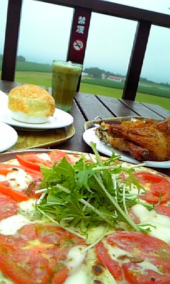 景色は残念な感じですが、ピザやいりいろな種類のチキンは、どれも美味しかったです。