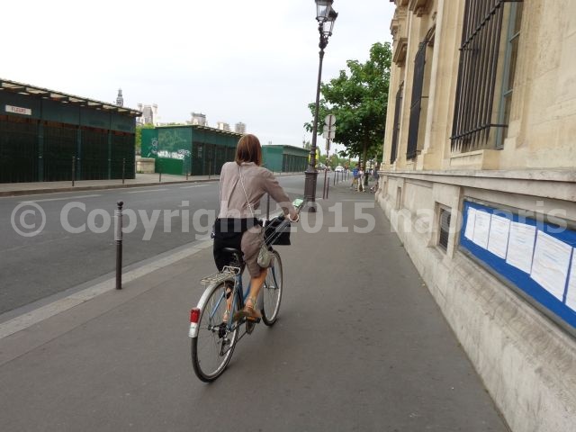フランス国内の交通規則では自転車は自転車専用道路、バスレーン(Couloir de bus)、車道のいずれかを走行しなければならず、歩道での走行は禁じられている。