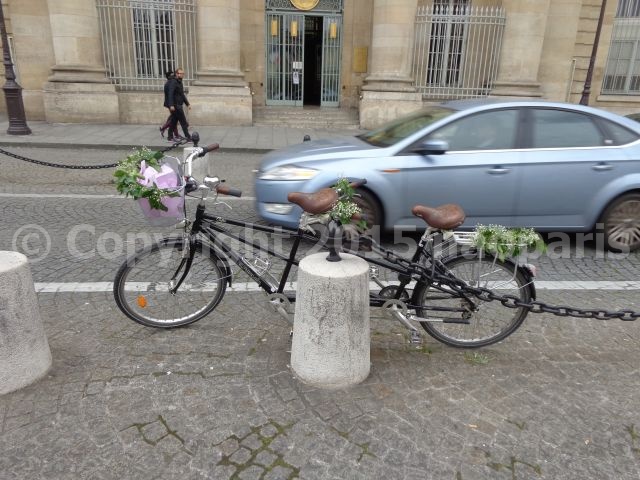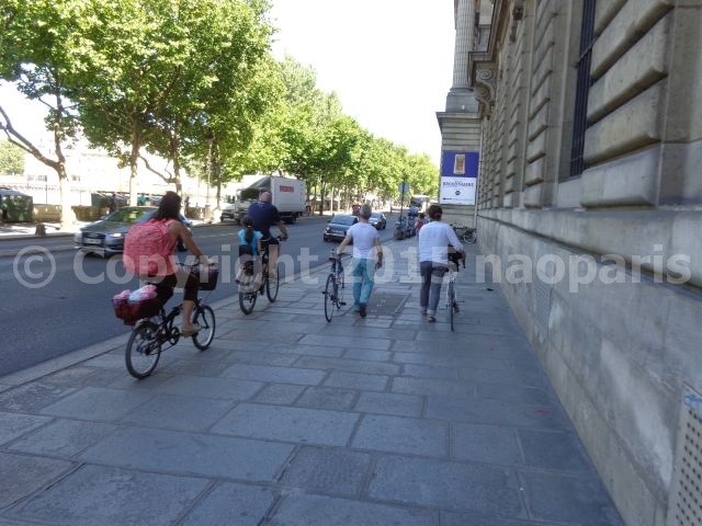 最近、歩道をがんがん走る自転車(スクータ・バイクも停めるところと探すフリをしながら逆行・・・)が増えてきて、かなり迷惑。時々、ベルを鳴らされて『どけ!歩行者』って感じだとむかつく今日この頃のパリです。