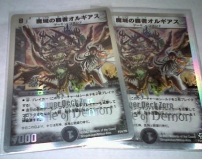 1月12日(土)ホビーショップHI!HOY(工事中だね)ゼロ大会大会方式:トーナメント3本勝負2本先取参加人数:16人参加費:200円使用デッキ:黒城デッキ(ベガ×3、テルス×2、ムルムル×4、バロムエンペラー)結果:3位1回戦相手:勝舞1本目○相手コッコ、破壊する相手またコッコ、破壊する相手ドラゴンを素出し次にバジュラ進化して攻撃してくる2マナ破壊されるが、STからサーファーでバジュラを戻すこちら、ベガ、宝剣と最後にドルバロム勝ち2本目○相手バジュラで攻撃するも、こちらテルスでマナセーフこちらのターン、デーモンハンドでバジュラ破壊ベガ×2で、相手の手札を無くすこちらどんどんクリーチャーを並べ、総攻撃勝ち2回戦相手:白凰(バザガジールドラゴンなど火あり)1本目○STヘブンズゲートが怖いのでドルバロム待ち作戦相手6ターン、進化アルカディアスしまった、闇呪文使えず、ヘブンズゲートしか頭になかったこちらバロムエンペラー進化して相手立て直しして、ヘブンズゲート連発こちらマナたまり、ドルバロム進化相手ST無しで勝ち2本目○こちらバロムエンペラーからWブレイク次もWブレイク相手進化アルカディアスでバロムエンペラー破壊そのままシールド攻撃され、こちら不利にギリギリのところでドルバロム進化勝ち準決勝相手:黒城(blacksさん) (ほぼ同じデッキ内容、だって、パクリオだから参考にしたから)1本目×お互いのクリーチャー手札を破壊し合うこちらバロムエンペラーを出してこちらの光クリーチャー4体全滅(泣、知らなかった、、)アクアン、エナジーライトしたこちらが山札切れ負け~2本目×同じ展開でエナジーライトしたこちらが山札切れ負け~オリジナルを超えることができなかった。。。3位決定戦相手:白凰1本目○2本目○ヘブンズゲートを警戒していたら相手マナにヘブンズゲート3枚ある!相手ウルフェウスからヘブンズゲートでエールフリート1体のみ出すこちら安心してバロムエンペラーそのままシールドブレイク勝ち3位でした!!! やっと2枚目をゲット!結局、勝利イラストは無し