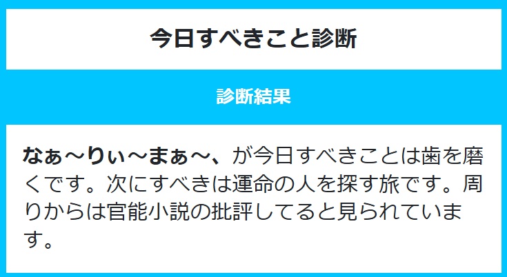 2025年2月16日(日)の今日すべきこと診断今日すべきこと診断2/16 posted by (C)聖帝さぅ〜〜〜〜ざくん!応援よろしこです!。↓その他ランキングby CyberBuzz