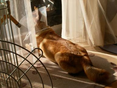 今日は、はなマルのの話です。トライアングルへ初診でいってきました。でGO。(ここからまあぽんが報告します)これまでマルの付き添いで行ったことはあっても自分が受診するのは初めてのはなマル。予診で診察室を暗くして目を見る機械を先生が近づけると大パニック!のっぽ先生のところでスコープをあてられた時は大人しかったのに何故???あまりに大暴れするはなマルに、先生から「まあぽんさん、外で待ってて下さい」と出されてしまいました・・待合室にまで聞こえるはなマルの泣き声、物の倒れる(!)音結局、一旦休憩しても一度予診することになりました。広い方の待合室で持ってきたボウルからお水を飲んで少し落ち着いたはなマル。再度診察室へ連れて行かれた時は大人しく看護師さんに抱っこされていました。が・・・やはりこの時も大暴れしたらしく、院長先生からのお話では暴れすぎて写真が一枚しか撮れなかったそうです(汗)先生「白内障ですね~」まあぽん「手術でしょうか」先生「手術は必要なレベルだけど、前後の検査を(はなマルが)させてくれるか不安があるからね~。検査ができなければ手術しても仕方ないでしょ」まあぽん「今日は、はなマルにとって初めてのことばかりだったんです。私と二人だけで車で遠出したり、こちらでも今まで付き添いで来ただけで診察も初めてだし・・手術後は実家の家族も動員して検査の付き添いをします。頑張りますのでよろしくお願いします」先生「点眼は問題ないと思いますけどね。検査が・・超音波なら撮れるかな?まあぽんさんもこちらではまマルちゃん押さえて下さい」検査室の検査台に連れ来られたはなマル、抱き込むようにして「大丈夫、大丈夫よ~」と話しかけているとに超音波用のゼリーが塗られます。これは抵抗がないのか大人くしています。そして超音波の器械をあてられて撮影。なんとか一枚撮れたみたいでした。でもゼリーをふき取ってからもう一度器械を近づけるとパニック!前途多難です・・・院長先生の配慮で、通常は眼底検査と手術は別の日に行うのですがはなマルは11/20の午前中に眼底検査(軽い麻酔を使います)をし、結果に問題がなければそのまま午後手術へGO!というスケジュールを組んで下さいました。この後の予定は、11/15に手術前のレントゲン・血液検査・心電図、手術当日(その日は入院)、翌日退院、1週間後検査・・・とマルと同じように進みます。いつもながら、トライアングル動物眼科の待合室にいると頑張っているのは我が家だけではない!と勇気づけられます。どの子もみんな同じようにの病気と闘う仲間です。飼い主さんも遠距離を厭わず通院していて(我が家も、隣県からで近くはないのですが)頼もしいです。====================================なるぽんは、仕事!マルは、お留守番!まあぽんとはなマルだけで病院行ってもらったけど本当にごくろうさま