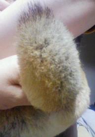 マルとはなマルは、しっぽが全然違うんです。はなちゃんのしっぽたわしのようで(カットはしています)巻いていませんマルちゃんのしっぽマルのしっぽは、体に乗っているので「のりしっぽ」しっかり巻いています。個体でこんなに違うんですかね~はなマルは、この夏戦っていました。ストレスとアレルギーから脱毛しています。お腹から腰まで大きな範囲です。でも、それも少しづつ良くなってきました。マルと体格が同じくらいになって負けないからでしょうかこの写真でも足の方は毛が少ないのがわかります。はなちゃん、かわいいでしょあたちだって負けないわ昨日より元気になったマルの笑顔です本当に「カラー美人」ですよねカラー装着だけは、誰にも負けません