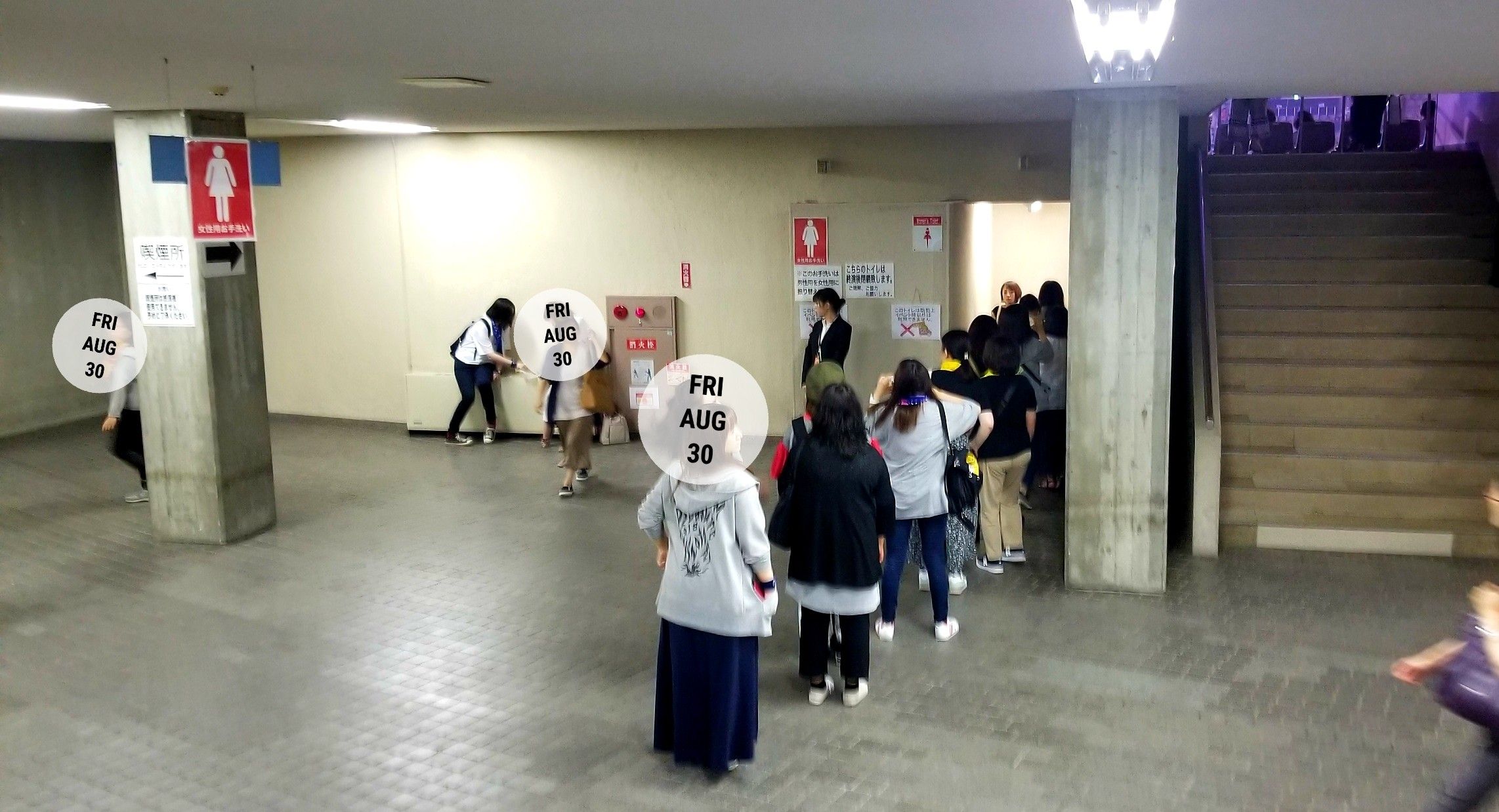 18時点で入場口 (北東側) に近いトイレは既に長蛇の列になっていましたが、2階南側のトイレはガラガラでした