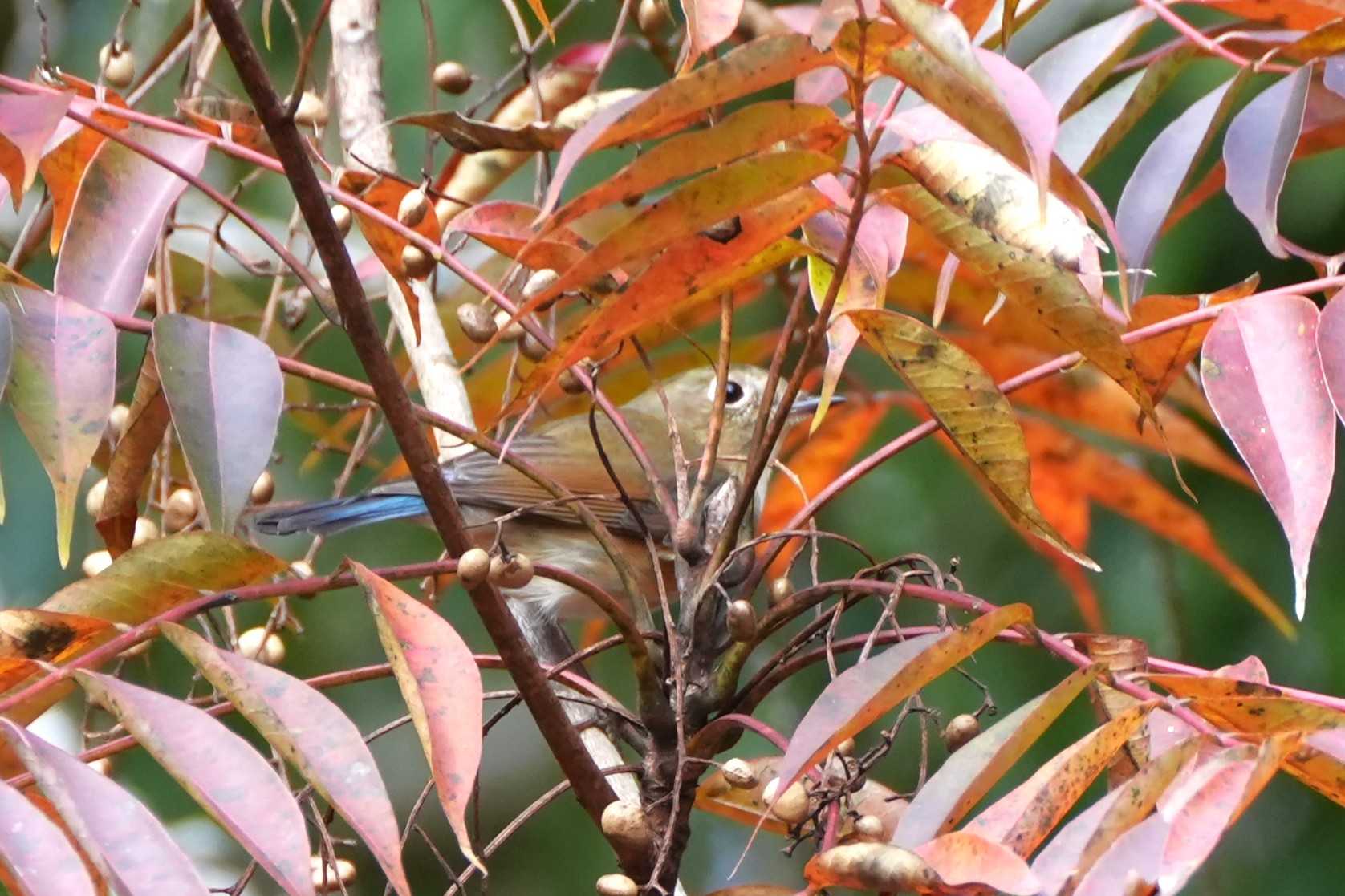 2025-11-19-再度公園 ルリビタキ♀、アトリ、キンクロハジロ♂