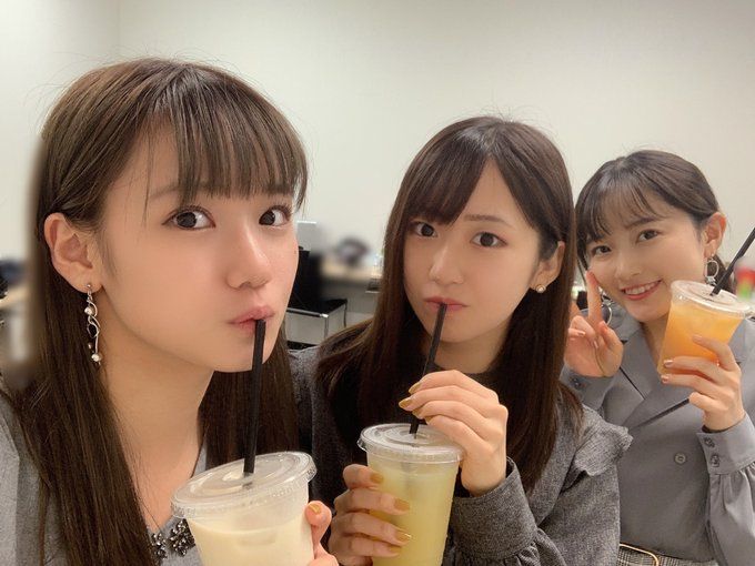 盛りだくさん会の4日目にフルーツジュースの差し入れがあり、ちぃちゃんはオレンジ、よこやんはバナナ、ちぇるはりんごを選んだとのこと。ちぃちゃんはカントリー時代のメンバーカラー、よこやんもメンバーカラーに近いフルーツを選ぶ中、ちぇるだけがメンバーカラー(パープル)から外れていて、ぶどう系のジュースは無かったのかなぁ・・・?