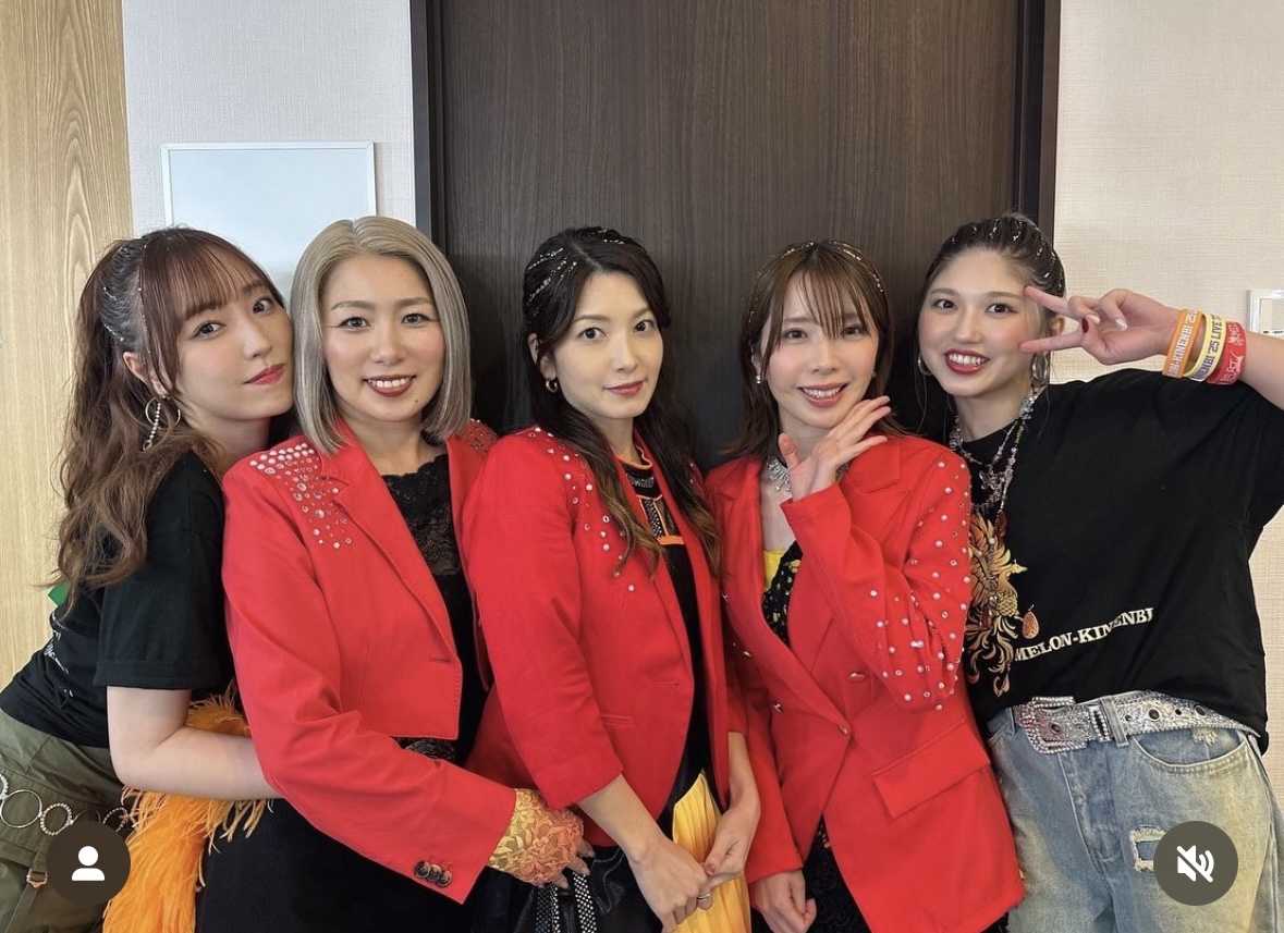 メロン記念日の結成25周年ツアーで、大阪の梅田BANGBOOでライブを行った、柴田さん、斉藤さん、村田さんと、ゲスト出演のタケちゃんとふくちゃん。メロンのツアーはまだまだ続きますが、タケちゃんとふくちゃんは最後の出演で、夢のような時間を噛み締めてる感じですね・・・。