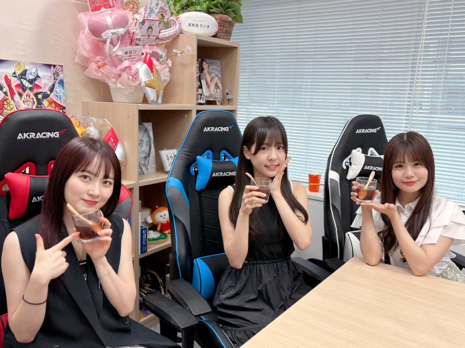 れっさ〜、るのー、あんみぃでお送りした、「つばきファクトリーの今夜だけ浮かレディオ」からのひとコマ。収録は昼過ぎからだったけど、前日お疲れで起きたばかりのメンバーが多かったそうで、それでまったりとした雰囲気なのかなぁ・・・?