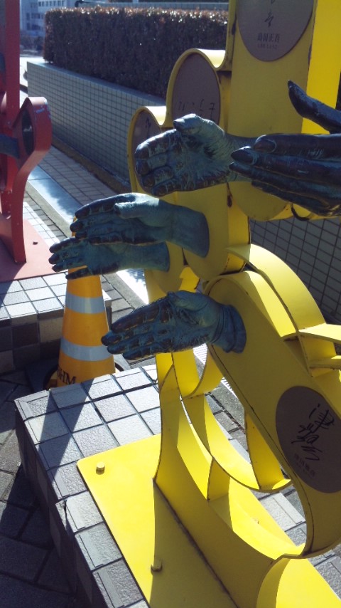 なんか有名人の手がいっぱいあって握手出来るみたいな銅像なんだけど、