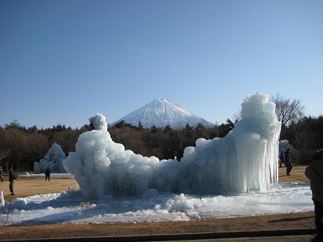 今朝のニュースで「西湖の樹氷祭り会場で、クニマスの標本を公開する」と言ってました。先日行ったとこではないですか。この氷柱は1月9日のもの。まだまだ作成途中だったので、かなり育っているものと思えます。見に行きたいな~小鳥とも、遊びたいな~写真も撮りたいな~デジカメどうしようかな・・・