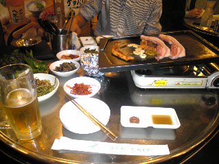 昨晩は久々に神戸の夜を楽しんで‥ まずは御影にある韓国料理のお店でこんな感じでした。 豚ばら肉を鉄板で焼いてごまの葉っぱにキムチなど包んで食べる、本格韓国家庭料理を堪能しました。 とにかく身体にもよろしい感じで‥ その後も続く・・・ また行ってみたいと思います。
