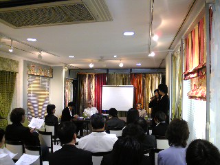 23日は、インスタジオ・ハンターダグラスギャラリーの一周年イベントでした。 まずは、インテリア業界の最先端の方々のトークセッション。 山中先生が司会で、デザイナーの岩倉氏、日本FISBA、マイケルフイッシュバッハ社長の話しはとにかく、聞き応えがあって素晴らしい内容でした。 「楽しさ」というテーマに対して時代のキーワードは何か?、住まいは、インテリアはどうあるべきか? 色んなヒントを頂きました。 そして、セッションの後はパーティー。 参加者の方々との交流。 カレイド会の講師もリクルートも兼ねて、色んな方と話すことが出来て‥ また、新しい繋がりと出会いの夜になりました。 いつもの流れで、 地下の居酒屋で飲み直し。先日の講師の原田さんがプレゼントされたケーキも頂きました。 それにしても素晴らしい出来栄えには驚き。