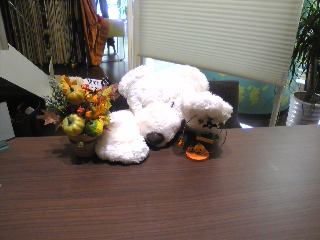 お得意先にある行くたびに気になっていた、シロクマのフワフワした癒し系のぬいぐるみ‥ 今日はハロウィンのおきものと一緒に撮影。 今日も楽しい気持ちにしてくれました。 社員さんも気持ちに余裕があることが大切です。 季節にあった小物の飾りつけってセンスが現れて‥ ハロウィンの次はクリスマス?