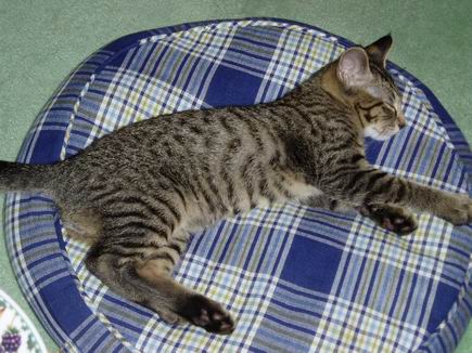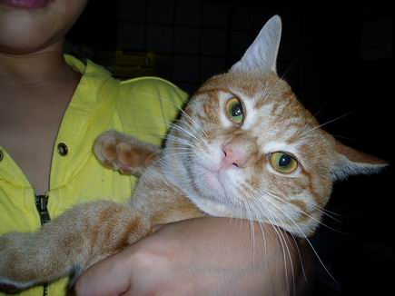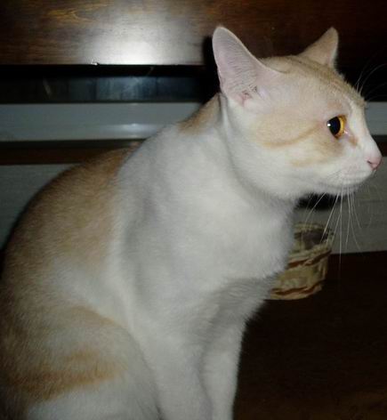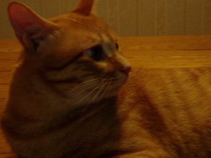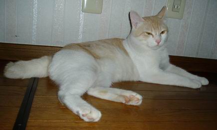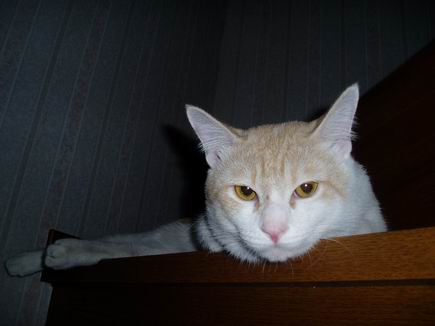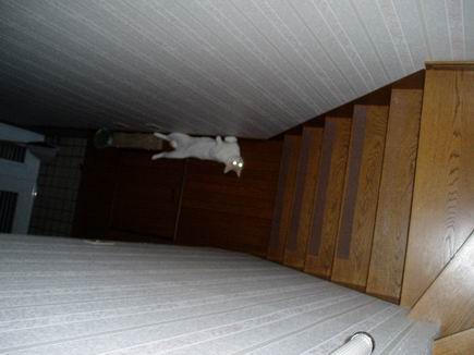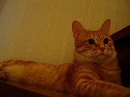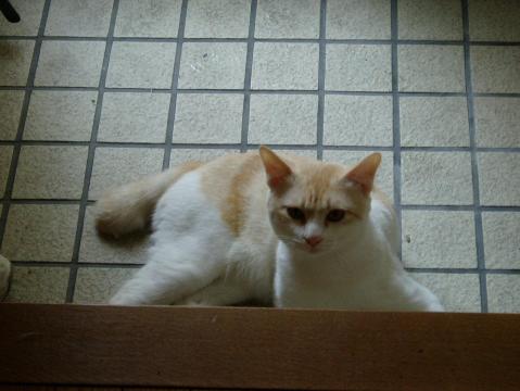 うちのジュダ王子。定位置の階段でスフィンクスのように鎮座ましますとき、見よ、このあご(?)首(?)を二重あごどころか、首が埋もれて、なんとも肉々しいお姿腹も貫禄出てきたし、ダヤンが来てからというもの、その大きさの違いに、あらためてジュダ君て、でっかいって。でもさ、いつも1階から3階までものすごい回数駆け上がって、運動量ってすごいと思うのさ思うにジュダ君、全身すんごい筋肉だぜ、きっとんー、たまらんっかっちょいいどーっでも、その首のお肉イカシテナイかも・・・・可愛いけどぉすくっと立ち上がって、まっすぐ伸ばしたお首が大好きよん