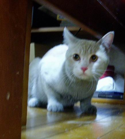 えー、やはり夜中から朝方にかけてはミルミルも一緒に、3にゃん揃って、寝ているアタクシたちなんざ転がる丸太とでも思って居るのか、平気で踏みつけ、動けば噛み、飛び越えておっかけっこ。何度もうなされる姫たち。 居間でダヤンとジュダが姫たちと遊んでいる頃、そーっと玄関を見にいくと・・・・くらい中にぼーっと浮き上がる白いミルミル。やはり玄関で涼んでいたかっんで、いままで一体どこに潜んでおったのなんでアタクシ、昼間に見つけらんないんだろーこないだ、3にゃんとも姿が見えなくて、ちょー慌てて探しまくった日だって、ダヤンは、アタクシの座ってるパソコンのイスの後ろの棚から出てきたさ。ありえん鈍感さなのかーっいや違うねにゃんちゃんは、気配を消せるのさそーに決まってる。逆に言えば、やっぱしアタクシが鈍感なのか・・・・ いずれにしても、この3日間、昼間のうちにミルミルの姿は見れていない。朝と夜は見れる。触れる。ゴハンも食べてる。う○ちも立派だ。謎は深まる。この謎は、解明せねばなるまいアタクシの眼は節穴。かくれんぼは、苦手だ。アタクシを隠れる方にまわしてくれ。ミルミルに見つけられてみたいぞ。いやしかし、ヤツは嗅覚で見つけちまうな。そーか、アタクシとて、嗅覚を磨くべしなのか・・・・今週は、ぶっとーしで仕事した。んで、明日は姫たちのコンサートのお手伝い終日。さすがにへばりつつある・・・・いつも以上に、がつんとゴハン食べることにしようこんな時こそ「ゲンコツ餃子」だが、いかんせん、アタクシにそのパワーが残っとらん・・・気力が足りん・・・早く隠居したいぜぃぃぃ家事を任せる日はいつの日なのか・・・・ってなことで、ミルミルは元気よ~んそのうち突き止めるさ。ちびっこい家だもん