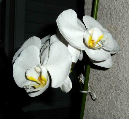 ご近所でもっぱらの話題になっておるのは、ふらわーんちの玄関で素敵に咲き誇る胡蝶蘭。最近、しょっちゅう呼び止められる。「あーた、どうやって咲かせたのん」いやいや、アタクシ、まったくのシロウト。まさに奇跡的な胡蝶蘭。んで、いったいどうして咲いたのかって「放置してた」マジで。花の終わった3本立ちの胡蝶蘭の鉢。小売店では2万円超のシロモン。ふらわーは、「あんら、この葉っぱ、きれいな緑ぢゃんっ」と、苦笑いする社長に了解を得ておうちに持ち帰ったさ。それが10月だったろーか。その後のことは記憶がない。ホンマにホンマに、ほったらかし。そしたら7月半ばにつぼみ発見ありゃ慌てて、鉢の下の様子を探ることにした。そしたらさー、鉢の中はほとんど発泡スチロールで、根っこの周りに水ゴケが巻いてあるだけぢゃ~ないかっこれは可哀想だっぴっ急いで3つの鉢に、ふかふかの土を入れて、腐葉土混ぜて、水ごけのまま、移植。直射が当たらないよう、玄関の柱の影に据え置いたさ。それからは、毎夕、つぼみに話しかけんばかりに優しく水遣りしつづけたさ。そしたらさ、こーんなにキレイに次々咲いて、毎日アタクシをお迎えしてくれるように咲いたっぴいんや、嘘みたいっ近所のおじちゃんも、隣のおばあちゃんも、見たことのない通りがかりの人々まで、アタクシに気安く話しかけてくれるっぴ「んまぁ、りっぱな胡蝶蘭」ってさ。いやぁ・・・なんにもしてないだけに、ちょーこそばゆいがほめられちゃ~、木に登るぜっお花が咲くって、な~んて幸せなんだろーお花のおかげで、あたしゃ、近所に知ってる顔がめっちゃ増えたさん~、枯れた鉢植えもあなどれん。これからも、アタクシ、目を光らせますわん