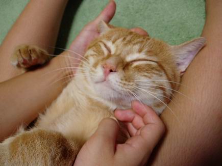 愛しのミルミル姿も可愛いが、声も可愛い。キュートな女の子仔猫みたいに「みゃ」と鳴く。この子が最近、強烈に甘えん坊と化して、アタクシが寝転ぶやいなや、速攻どこからか現われ、「みゃ」と鳴く。この声は、「今夜もおねがいネ」の合図だわさ「よちよち、おいで」って、手をかざすとまずアタクシの手に頬ずりしたあとコテンっと横たわるこれは以前の写真だが、ちょうどこんな風にアタクシの横に寝転んで、首の辺り、おでこ、あんよの付け根、背骨の上、あご・・・・順番に掻き掻きしてくれと自分で転がって位置を指示するかのよう。果てしなくつづく要求。でも、その表情はあまりにも可愛くて首根っこ掴んでぎゅっと引き寄せちゃううっすらと眼をあけて、アタクシを見上げるミルミル至福の時間だわんちょうどこんなカオしてるかなぁ気持ちよいのはワカランでもないでもさ、てきとーに切り上げてさ、満足してくんなきゃアタクシかて、眠いんだわさ昨日はいつまで撫で撫でしてたのか、全く全然記憶がないぞさんざんエンドレスで掻き掻き要求しただろーはっと気付けば、またもやぎりぎり起床ぢゃにゃ~か心臓に悪いぜ・・・・今夜も・・・かぇあいあい
