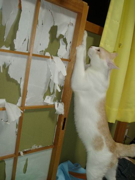 ダヤン君は、あんまし爪とぎしないなーミルミルは、すんげー爪とぎしまくりさ(屋根裏でねずみ色になる前のミルミル)壁の傷も、ドアの傷も、ほとんどミルミルの爪あとだっぴジュダくんは、おりこうに「爪とぎグッズ」。なぜか、アタクシのかばんも餌食になってるけど・・ダヤン君は、絨毯でゴリゴリ。んで、おっきい姫が爪をチェックなんだか、妙におとなしいぢゃんおっきい姫は、こわごわちょびっと切るさ。そんなんぢゃ、またすぐ切らなくちゃだっぴ