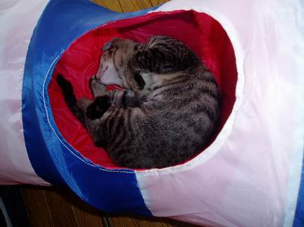 お出かけ前に玄関でおちびちゃん発見。トンネルごと、どけちゃうとこやったわーまーるくなって、ぐっすりいかに玄関だろーと、トンネルのなかぢゃ暑いだろーすんごい色合いの中。落ち着いて眠れるのかあー、ごめんごめん起こしちゃったね~もっかい寝てな可愛ゆいのぅ