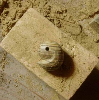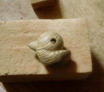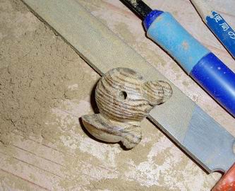 (昨日の表面)削り方の手順をちょびっと変えてみたけど、最終段階はほぼ同じ。まっことシンプルな、素直なま~るい勾玉になりました。後ろ側はこんなに変化。(昨日の裏面)ん~、両面撮影してみるとビミョーに違う顔してるねぇ・・・さてと、磨きに入りますかな
