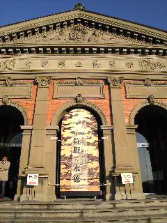 今日はね、明日が最終日の「狩野永徳展」に行ってきましてん七条で地下から地上に出ると、なんだかものすごい人の波。同じ方向に歩いているぢょ国立博物館に着くと、いきなり「一時間待ちでっせ」とアナウンスが流れる。あっそんでも、絶対観るもんっチケット買って、パンフを握り締めてずんずん建物に近づいていくと、見え始めた長蛇の列最後尾はどこねやほんまに一時間かかりそうやん一時間の間、横や後ろからは政治のハナシ、野球界のハナシ、ボクシングのこと、ゴルフのハナシ・・・と、なんやかや聴こえて「ぷぷぷ」あちこちにメール打ったりして時間つぶし。43分くらいで目の前に着いたかな。やっと入場したらさ、ちゃんと入場制限してるのは正解だったさ。案外じっくりはっきりすっきり観れたぞっいやぁ・・・・大迫力どした観にいってよかったっあたしゃ、パワーもらったねよっしゃーっって、また木を磨けそうだっぴスッカリ満足して図録を買い、外に出ると来た時には気づかなかった紅葉。ここの建物は、いつ観ても好きだなぁ常設展もじっくり練り歩いて、姫たちの居ない一人の時間を愉しみましたぞあー、落ち着いた満足満足。すっかり夕暮れ時になったころ、博物館を後にしましたぶらぼーな日どしたぇ~さ、もうちょっとまた休みますぇんじゃ、しぃゆぅー