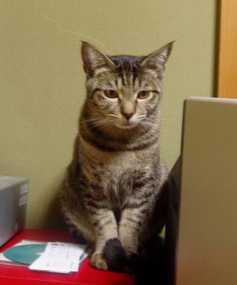 帰宅して、玄関横の和室を見やると、そこにはミル王子のお姿。次の瞬間、くるっと後ろを向き、こたつに潜り込もうとするも、なぜか入れずしばらくこたつの布団にお顔を押し付けていたが、そのうち諦めて後ろに回り、きっと少し布団が持ち上がった箇所から潜れたのだろう・・・ヘンなミーちゃんアタクシ、「く、く、く、」と笑いをこらえるにゃはははー。そんなミーちゃん、寒いからか、ちかごろみんなで寛ぐ居間に頻繁に出没。相変わらず、へっぴり腰で様子を見てるけど、振り向くとすぐそこに居たりするのよーちょー可愛いっそんなミーちゃんの、額縁姿うむ、絵になるミル王子