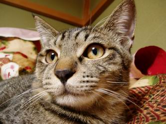 ちょっと今夜は温かいにゃんちゃんも、みんなのいる居間にやってきて、テレビの近くに集合かと思いきや、声だけだったみーちゃんは、階段から居間を眺めてたみーちゃんもおいでよ~ってカメラ向けたら・・・逃げられたダヤン君さー、急におっきくなった気がするねぇ「ダヤン君、男前になってきた気がせん」って姫にゆったら、「前からオトコマエやし」と、返されたく~っ、アタクシたち、3人そろって親バカちゃん今日ね、ダヤン君がね、お膝に上がってきてくれたのどんなけ嬉れぴ~んよっ実は、はぢめて自分から乗っかってくれるなんてっうきゃきゃ~っちょっと壊れかけえへ