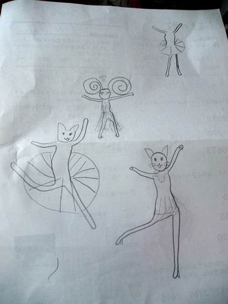 「おかーひゃん、100点とったでぇ~」と、ちび姫がテストを見せる。ふーん、また理科なのねなんでっ「いや、ちゃんとわかるし」ほんまいかいな・・・「んでマンガはないのかい」と、確認するなんざ自分でアホちゃうかーと思うんだけど、「あるよ」って、見せてくれたのがコレだっ昨日、バレエのお稽古いったさ。跳び箱で背中に違和感あって、3回もやすんぢまって、このままズルズルと・・・・・みたいな、がび~んな想像してたアタクシは、様子見で見学にしたものの、ちゃんとお稽古場にいったことでひとまず、めっちゃ安心したのさ。この絵は、バレエだよなー、どう見てもうーむ、ふつーに可愛いやん栗坊シリーズはどーなったんで、この触覚みたいなん付いた虫みたいなんは何バレエの衣装っぽいが、スケスケとちゃうのきゃははそーか、そーか、なにげにキミ、バレエのこと考えてたんだねぇぬふ