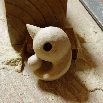 (半身荒削り)可愛くなってきた左半身と、おんなじように右半身も削ろうと、いろんな角度から何度も確かめながら少しづつ削っていくんだけど、好き勝手に削っていける半身とちごて、同じに削ろうと気ぃつかうんはなかなかに難儀よぉしかも、きっと木の向きがあるんやろねぇ、ヤスリがいっこも効かへんちゅーか、ヤスリ当てる向きによって、削れたり削れへんかったりなかなか進みまヘンねやワ今日はこの辺でねちゃおーっと ん~、寒くて肩こったわい・・・・自称、勝手に応援隊長 大好きなの・・・うふ