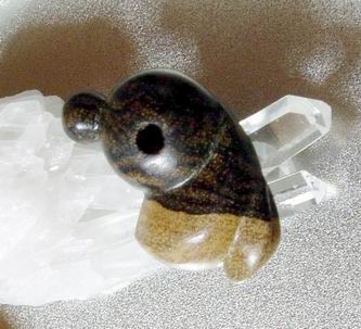 今日は、姫たちの合唱の初練習。親子ともども教えていただいている先生に、やっとこさタクト(指揮棒)をお渡しすることができたのよ。先生ね、とっても穏かな優しい笑顔で喜んでくださってだけど第一声はこうだっ「黒いタクトは初めて見たねぇ」先生が教えてくださったわ指揮者は大抵、黒い服を着るよね。・・・たしかにそうすると、白いシャフトだとよく見えるんだよね~伺ってみれば、確かにそーだわ・・・なるほどねぇ・・・そりゃそーよねーそか、んじゃ、白っぽい材でまた創るべっってなことで、やっぱしずっこけなアタクシ披露しちまったねぇもうひとつ、こないだ仕上がってお贈りした黒ちゃん勾玉が持ち主さんのもとへ無事に届いたとの嬉しいお知らせがありましてんでもって、アタクシがどーしても上手く撮れなかったお背中、ちびっこい可愛い羽を気に入ってくださって、綺麗に写真撮って送ってくれたのふーむ、いつものことだが、ひとたび自分の手を離れると、もうすっかり気持ちもなんもかもゼロになっちゃって、届いた写真見てて不思議な気持ち一昨日までニギニギしてた勾玉なのに、すっかり遠い存在で、あら、可愛いぢゃんっみたいな感覚。上手に写してもらったお背中、せっかくだから載せちゃおうっとあんがと、持ち主さん自称、勝手に応援隊長 大好きなの・・・うふ