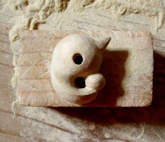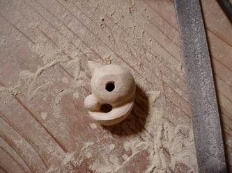 年末から始めたふたつの色を持った面白い木片。これが硬いのなんのって・・・・石みたいに硬いのよ。んで削って出てくる粉も肌理が細かいことぼちぼち削るにはちょーどいい。せっかくの材だから、ナニか削り出したくて、まだイメージは鮮明にならんけど、とりあえず削り残して・・・・可愛い姿が出てきたわん自称、勝手に応援隊長 大好きなの・・・うふ