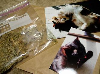 いつも憧れている、美しいにゃんこサマのママにオネダリして贈っていただいたブツが無事に届きましてん「キャットニップ」ちゅう、にゃんこちゃんの大好きなハーブでんな。キャットニップヨーロッパ・アジア原産のシソ科の多年草。地上高は約1m。 春と秋に種蒔き。耐寒性あり。非常丈夫。害虫が付かない。日当たり良好な水はけが良い場所に撒くべし。猫が大変好むハーブ。ハーブティー・乾燥葉はサラダ・スープのアクセントに。薬用に、解熱・発汗作用あり。なかなか見つけらんなくて、手に入れたくて手に入れられなかったのちょ~うれぴーっんで、無事に到着して中に入っていた美しい猫サマたちのお写真やら同梱されていたリンゴちゃんや、可愛い文字のお手紙に気をとられておったアタクシ振り向くと、すでに無事でなくなってしまってたんス犯人は・・・いえ、犯猫はダヤンくんですっあ・・・みーちゃんもら猛烈な勢いで喰らいついてしまいましたんス恍惚状態っすにゃんちゃんたち、よかったねぇリンゴちゃんを3階においておくと、瞬く間に蹴っ飛ばして1階に運んで遊びますのとってもお悦びのご様子ちょ~うれぴーっあんがと、みぃ&千代子さんママ種まき時になったら、「そろそろ撒きなはれやー」って、教えてねぇ自称、勝手に応援隊長 大好きなの・・・うふ