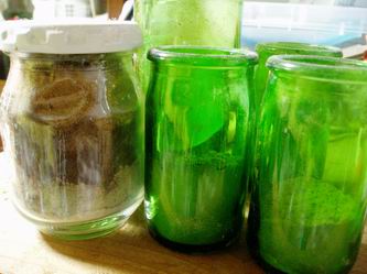 WitchEyesさんからこんなコメントいただきまして、>掃除機のフィルターの目がつまって困っています。大きな粉はサイクロン式で分離されますが、細かな粉塵は排気用の2重のフィルターの最後のひだひだ目を詰まらせてしまいます。困ったものだ。>リグナムは細かな繊維を樹脂で固めた様な樹種なので粉塵は危険ですね(グラスファイバーみたい)。>肺泡にプチプチ刺さりそう。。。。え・・・肺胞に刺さる肺胞って、肺胞って・・・・ハイホーハイホーしごとっがすっき~なんて歌ってる場合ちゃいますなぁ・・・あら・・・以前きんま堂さんにも「マスクしなさいよ」と教えてもらってたねぇ・・風邪ひいてるとマスクするけど、昨日もしてなかったし、大抵してない・・・・。パソコンのキーボードも、机の上も、本も、道具もなにもかも粉かぶり状況んでもって、粉ですが・・・実は、実は、掃除機で処理してないのぜ~んぶ保管中。だって、キレイなんだもんリグナムバイタはキレイな抹茶色。黒檀は、真っ黒。真っ白や、アイボリーの粉もある。リオグランデバリサンダーは、茶色。透明なビンの中は、白、緑、茶色、黒、白、ちゃいろって、地層になってるどーするつもりだろ、アタクシだもんで、掃除機で吸い取っていないのちなみに、この緑のビンは100円「梅酒」です。でっかいのが200円ばーじょん。梅が入ってて、けっこう好きあはははは。気ぃ~つけます粉。自称、勝手に応援隊長 大好きなの・・・うふ