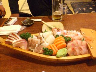 先週末は酒田市での楽器別講習会。土曜は午後開始だったので午前中に移動。天候は生憎の大雪。特に県境や月山の雪がスゴくて、途中では事故ってる車があちこちで停車してました。かく言うワタスも途中ハンドルを取られ、あやうく高速の外壁に激突しそうに・・・・。しかし、スピードを出していなかった為に事なきを得ました。ε=Σ( ̄ )ホッやっぱ、出し過ぎが一番の原因ですな。( ̄― ̄)(―_―)( ̄― ̄)(―_―)ウンウン土曜日は高校生のみでしたが、8~9人と程よい人数だったので、一人一人見る時間も取れて助かりました。1週間前は40人を一人でやったもんですから・・・。皆、集中して取組んでる姿勢がビシバシ伝わってきました。後で人伝いに聞いた事ですが、講習内容が分かり易くて良かったと。以前よりサックスや音楽が少しでも楽しく感じて貰えれば嬉しいです。1日目の夜は何人かの先生方と飲み会。知り合いに紹介してもらった[田舎]という地酒と郷土料理のウマいお店へ。最初に頼んだ刺身の盛り合せに、力石徹ばりのカウンターパンチ食らいました。だって、船盛りだったんだもん・・・。しかも、5人分で頼んだのに全てそれ以上の量をサービスして頂きました。右奥の高級魚ノドグロなんて尾頭付きですよ、あーた。他にも鯛の湯引き、カンパチ、サーモン等と盛り沢山。どれも脂がノリノリだし、イカは超甘いし、サタデーナイトフィーバーです。・・・・・・・、古ッ!!。( 。-x-)-x-)-x-) シーン・・・地酒との合わせ技は、美味過ぎるじゃねーか、コノヤロー(゛ `-´)/ 。今回の大きな目的でもある寒鱈汁も(勿論、1番は仕事です)、想像以上の美味に皆、驚愕。その後、ラーメン食いに行った強者どもと分かれ、ワタスはコンビニでモンブラン買って食い、必要以上に英気を養った1日目でした。2日目へ続く・・・・。