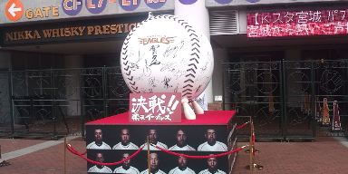 我が楽天イーグルス、堂々のCS第一シリーズ突破!!。ワーイ\(゜▽゜=))/…\((=゜▽゜)/ワーイ初戦の岩隈に続き、昨日は田中が素晴らしいピッチングで完投。今シリーズで計2人のピッチャーしか使ってないどころか、不振だった山崎が2試合連続ホームランと、あまりにもウマくいき過ぎて逆に恐い・・・。実は昨日、聖地Kスタからは目と鼻の先ある中学校で仕事だったんです。球場の音が聞こえる距離なので、Σo(*'o'*)o ウオオォォォォ!!という歓声が沸く度に(゜゜;)(。。;))((;゜゜)(;。。) ソワソワして、まさに蛇の生殺し状態。それでもすぐにでも球場へ駆付けたいを気持ちをグッと堪え、きっちり仕事はしましたよ、当り前ですけど。レッスン終了と同時に試合も終了してしまったので、帰りはわざわざKスタ前まで行き、興奮しながら帰路につく群衆に混じって、「オレも一緒に応援してたぜ」的な気分浸りました。当然2日連続で夜のスポーツ番組は'ハシゴ'コンプリートしました。必ずもう一度仙台に戻ってきてくれる事を信じてるぜ!!。