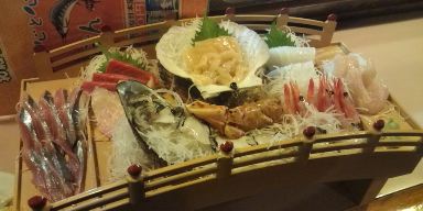 先週末は金・土がアンコン指導し、日曜日は気仙沼でアンコンの審査員してきました。この地区も他と同様、インフルエンザの影響で棄権したり、メンバーが欠けていたチームが結構ありました。演奏も同様に練習がまともに出来なかった様に見受けられるチームが多かった。これで審査行脚は終了致しましたが、今年はどこの学校もインフルエンザに振り回されっぱなしだった様です。普通というのはとても幸せな事ですね。前日の夜は地元で有名な居酒屋[ぴんぽん]へ同僚の審査員と行きました。人気の店の様でかなり賑わっており、カウンターへ。威勢が良くも、温かな接客の大将がオススメの刺身盛り合せを注文。運ばれてきたのは錦帯橋な器にこれでもかと盛られた刺身群。刺しの入ったマグロを筆頭に、メカジキ、ホタテ、イカ、サンマ等、更にはトドメのアワビが乗ってなんと\2000!!。仙台の国分町あたりだったら倍はするでしょうね。ちなみに右端の白いのはマグロの心臓です。初めて食しましたがコリコリで、んま~い。他のメニューも新鮮な上、ほとんど\500以下、ナマ中まで\350。大将は「うぢのはチィ(気)が抜げてっかたら安いの」と笑いながら言ってましたが、ちゃんとした生ビールですよ。生ビールって表記しながら発泡酒出す店も一杯あるのに。さんざん飲み食いした挙げ句のお愛想が、2人合わせてなんと\4800!!。ホント、驚異的な店です。気仙沼に来た際は是非是非お立寄りあれ。
