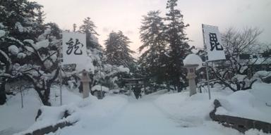 土曜日は米沢で楽器別講習会のお仕事。雪深い地域として有名ですが、校庭のサッカーゴールが半分以上埋まってるのは驚いた。しかし、同僚の先生に言わせると秋田の内陸部の方がもっと凄いのでこんなのは大した事ないそうです。上には上がいるもんですね~。さて肝心の講習ですが、20人以上参加してくれ、午前午後通して同じメンバーだったので、ネタが無くならないか少々心配しましたが、最後はアンサンブルを1曲仕上げる事も出来ました。皆熱心にメモを取ってくれ、特に唯一の男子は終止真剣に取り組んでました。最後は控え室にわざわざお礼を言いに来てくれ、逆に恐縮してしまう程。最近はホントに男の子が少ないからこのまま頑張って続けてくれたらうれしいな~。終了後は近所の上杉神社へ参拝に。米沢来たら必ず行くようにしてます。ワダシ、神社仏閣に行ぐと毎回お尻がキュッとなるんですよ。悪い事してないのに何故なんだろう、それとも気付がない何かを見透かされでいるのだろうか・・・。正面には上杉家の代名詞、毘沙門天の旗印が堂々とはためいております。軍神と言われた謙信公や、[成せば成る~]の鷹山公にお参りし、帰途につきました。ホントは博物館にも行きたいんですけど、仕事絡みなので閉館直前で毎回断念するはめに。でもいつかは天地人でブームになった、直江兼続の愛の字の兜を見でーなー。最後は神社の駐車場に積み上げられた雪の壁。宮城では考えられない光景です。