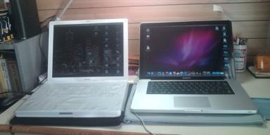正月はバチが当だる位ゆっくりしてたワダシですが、先日ホントに当だりました。パソコンでネットやってる最中に突然フリーズしたと思ったら、みるみるうちに画面が薄くなっていく。再起動すると起動途中でまたフリーズ。それが何回も続くのでセーフブートってヤヅで、やっとこさ立ち上がった。その後近所のケーズデンキで調べてもらったら、ハードディスクかマザーボードが破損してる可能性があると。修理するにしても¥60000位はかかると聞いて意気消沈。その日は様子を見でみましたが、フリーズする頻度が半端じゃなかったので、翌日mac book pro 15インチを購入。周辺機器も新しくしたのでかなりの額。年末にもプリンターが壊れて買換えたばかりなのに、この連続出費は北斗剛掌波クラスのダメージ。自分が前から欲しかったモノを買ったにも関わらず、もひとつテンションが上がらんのはそのせいか。ま、いずれは買おうと思ってたがら、ちょっと早まっただけとポジティブに考えましょ。それにフリーズした時に見でたネットのページにアクセスするという、訳の分がらんリベンジで憂さ晴らしもしたし。でもデータ移行や設定に数日かかり、今は首が痛い。右がnewで左が今までのヤヅ。写真では分がりにくいですが、画面の鮮明さでは格段の差です。これはマジックマウスという純正品でスクロールボタンがありませんが、表面を指でこすると4方向のスクロールが出来ます。他にも指であんな事やこんな事が出来ます。最初は別なマウス買ったんですけど、どうしても欲しくなって奮発しました。これから倹約しねげねーなー・・・。