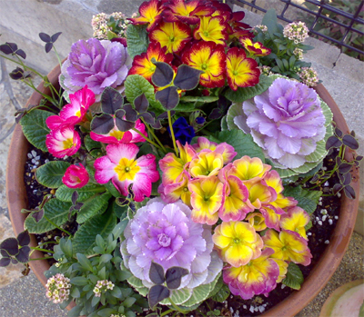。葉ボタンと寄せ植え。