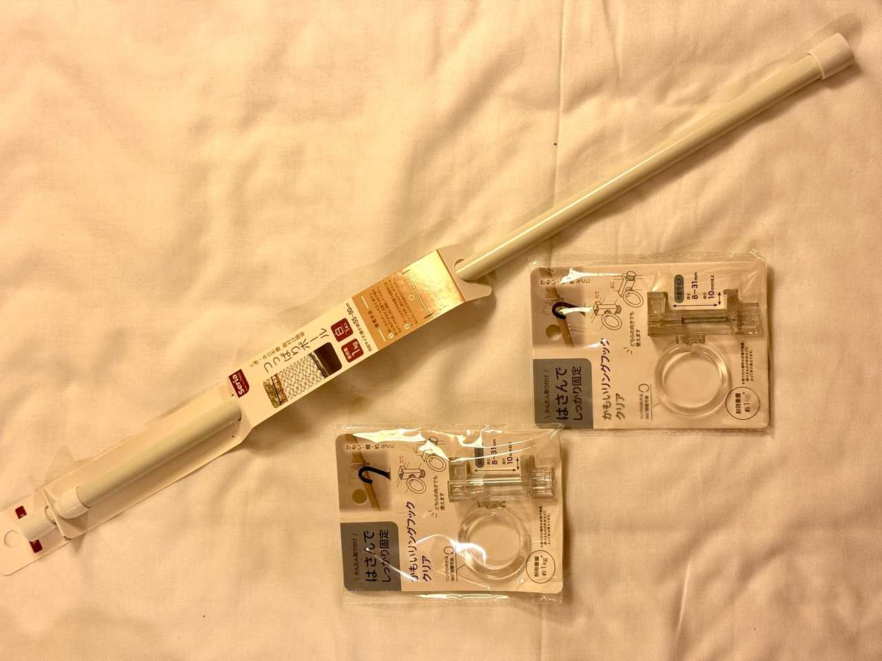 ホテル宿泊で、あると便利な100均グッズつっぱりポール 旅行バックに収まるサイズで選んでください。ポールだけでも役にたちますが、かもいフックが2個あるとさらに便利です。テーブルなどの出っ張りでもかもいフックをかけて、その穴にポールを通して使用できます。かもいフックはハンガー掛けにも使えるし持っていて損はないです。今回のホテルは窓の幅にポールだけベストマッチでした。バスタオルをかけるのに使います。※画像などの無断使用転載禁止らくらくカモイフックロング 2個入 N-3313 RCP ネコポス対応 鴨居 フック 窓枠 棚 桟 テーブル 便利 整理整頓 収納 シンプル 取付簡単 楽天で購入