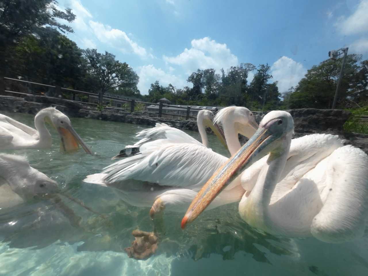 多摩動物公園 ペリカンパックン!口がかなり大きく開いています。上野動物園に居た子達も混ざって大所帯になりました。プールも広くていいね!※画像などの無断使用転載禁止動物柄 ネクタイ モモイロペリカン ネイビー / ブルー 楽天で購入