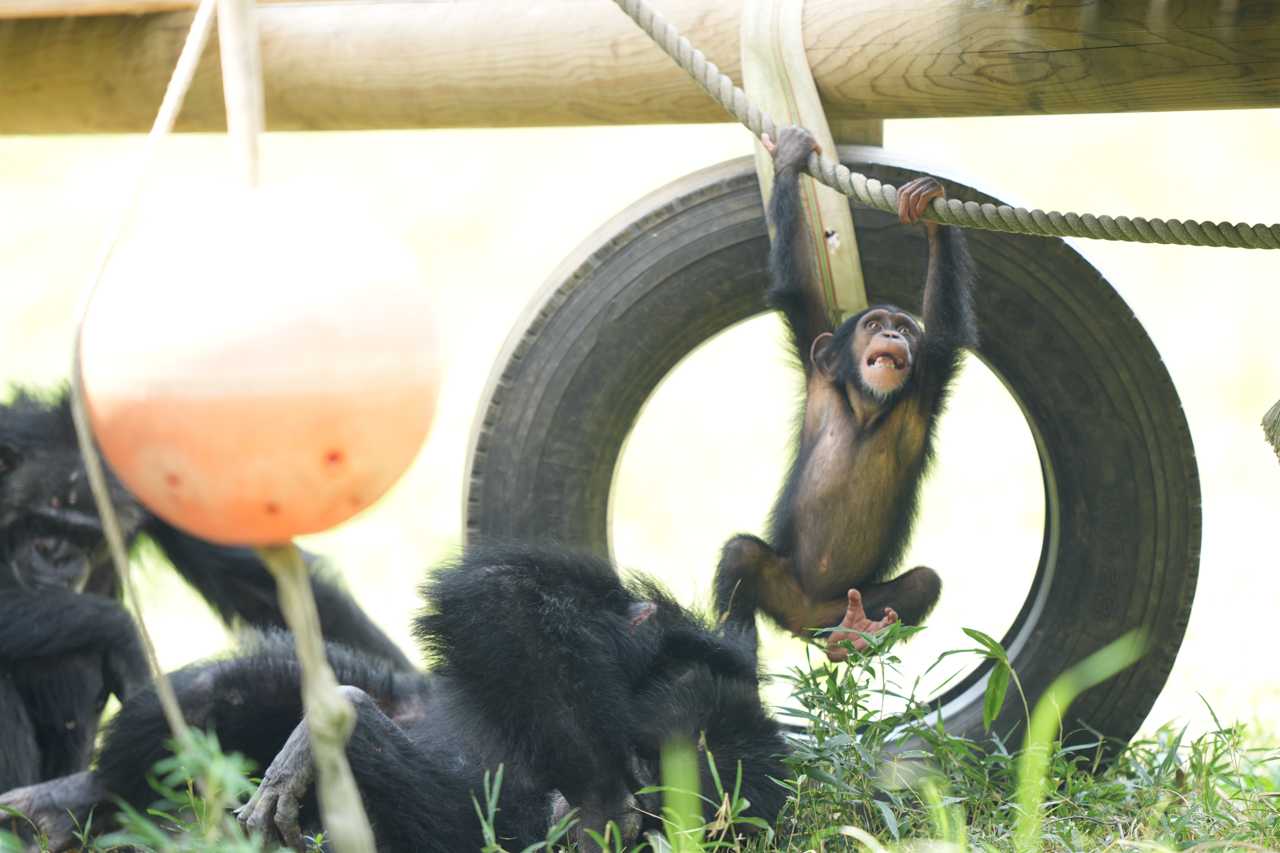 多摩動物公園 チンパンジーの子供ママに蹴りを入れるママ目掛けて・・・。飛び蹴りクルッと反転で知らん顔・・・。でも、ママにはバレていました。鉄拳制裁・・・。イタズラはほどほどにね・・・。※画像などの無断使用転載禁止Tシャツ 猿 さる サル お猿さん うほうほ かわいい チンパンジー ブーブー 動物Tシャツ楽天で購入